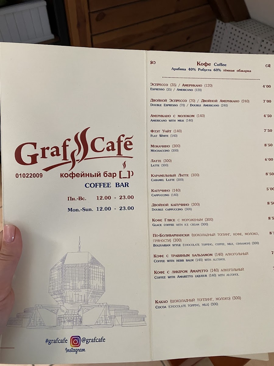Welcome to Graf Cafe, a charming retreat nestled on prasp. Niezaliežnasci 116 in Minsk, where the aromas of freshly brewed coffee mingle with stunning views. This delightful cafe is a sanctuary for those looking to unwind after exploring the vibrant offerings of the city, particularly after a visit to the nearby National Library's rooftop deck.